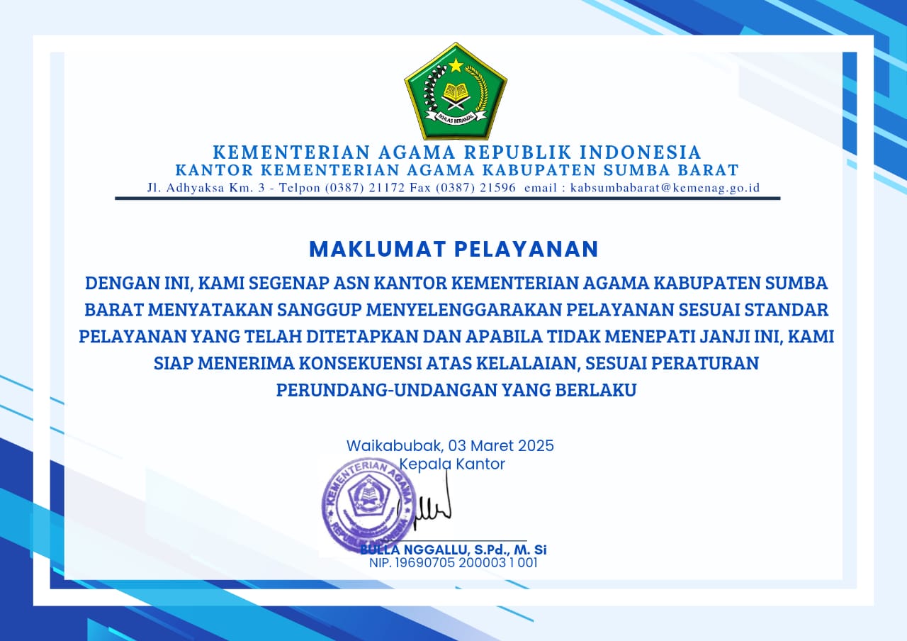 Unit Sekretariat Jenderal pada Kantor Kementerian Agama Kabupaten Sumba Barat merupakan unsur pelayanan teknis dan administratif yang berfungsi sebagai motor penggerak tata kelola organisasi, manajemen, serta koordinasi pelaksanaan program kerja di lingkungan Kantor Kementerian Agama.